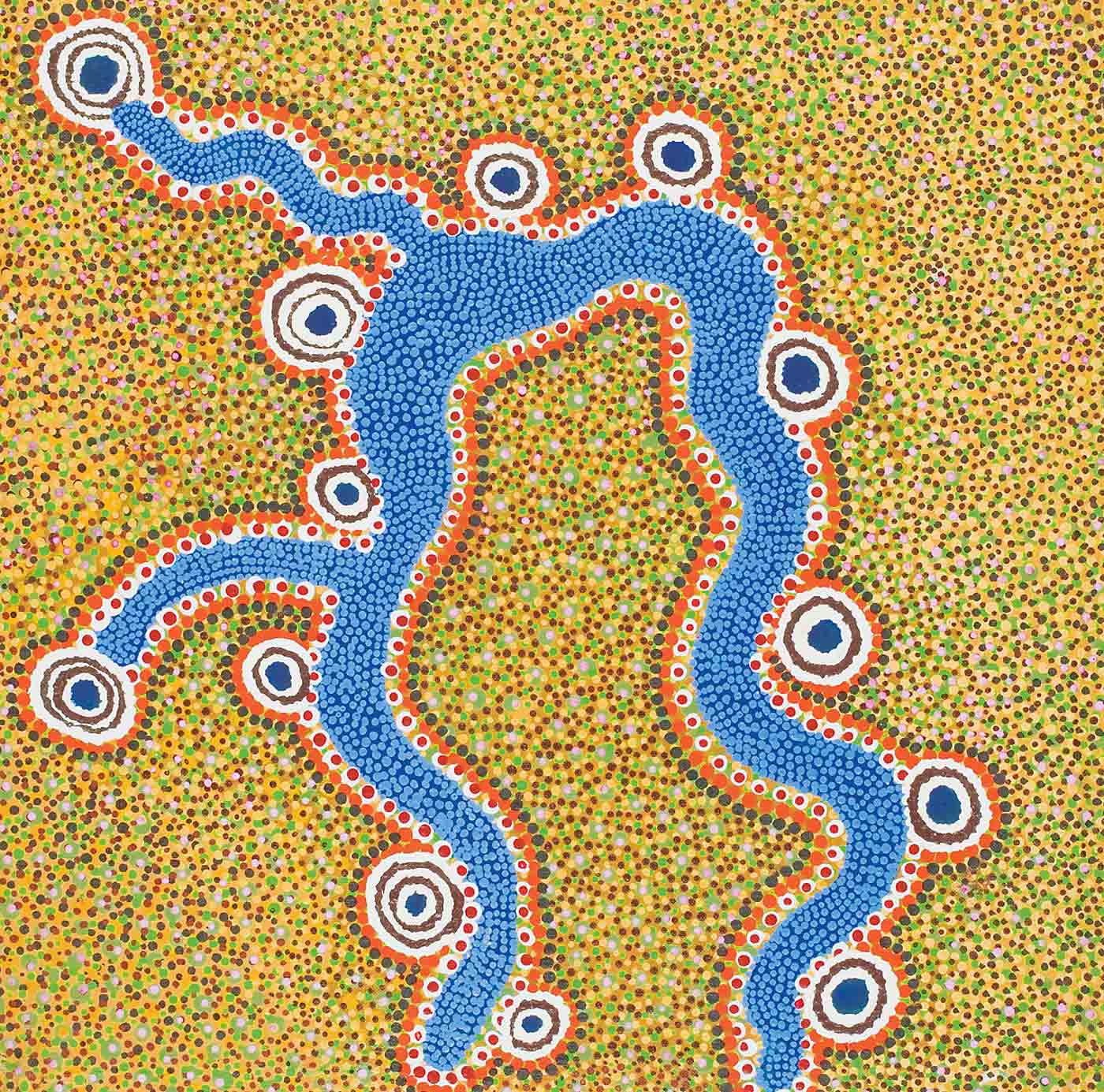 The Paruku lake system lies at the end of the Tjurapalan Jukurrpa, a major Dreaming track that binds together many language groups over a wide area. The surrounding fertile country provided an abundant source of plant and animal life for local groups and desert people in times of drought. These groups met regularly at Paruku and Tjurabalan to trade and perform ceremonies.